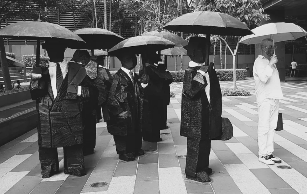 opp. the Ministry of Education, Singapore: Twelve Gentlemen by Ju Ming — and me :)
